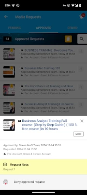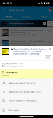 The app dashboard gives you a very easy view on all pending actions in your account and provides a fast and intuitive means to action each request.